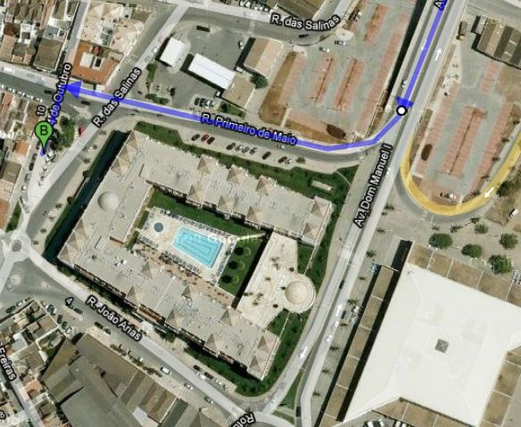 Depois de 500m chega à rotunda da estação de serviço vira à direita e depois logo à esquerda para a Av. Dom Manuel I, atravessa o rio e logo no final da ponte sai à direita mesmo antes do hotel Vila Galé. A entrada principal é no lado oposto à avenida da ponte. Para estacionar, à saída da ponte contornar para a direita (à volta da estação de serviço) e encontra um parque.