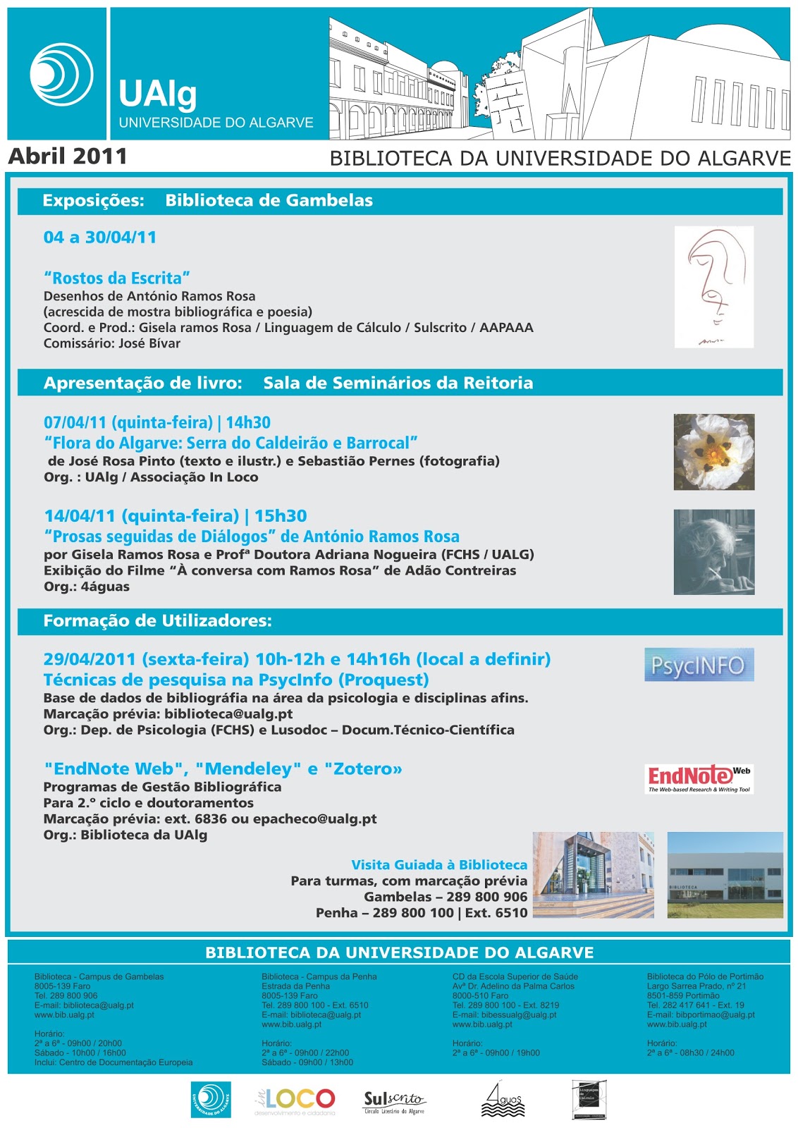 Mostra de Bibliotecas Escolares da Rede Concelhia de Faro, no Fórum Algarve, de 20 a 22 de Março, no âmbito do Mês da Leitura e das comemorações do Dia Internacional da Poesia.Esta iniciativa realiza-se através de uma parceria estabelecida entre a Direcção Regional de Educação do Algarve, o Fórum Algarve, a Biblioteca Municipal de Faro e o Grupo de Trabalho da Rede de Bibliotecas Escolares do Concelho de Faro.