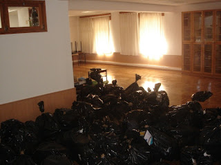 - Separar os documentos afectados pela água. Devem ser retirados para uma sala pequena pois irá ser mais fácil a actuação de desumidificadores pela menor volume de ar da sala.